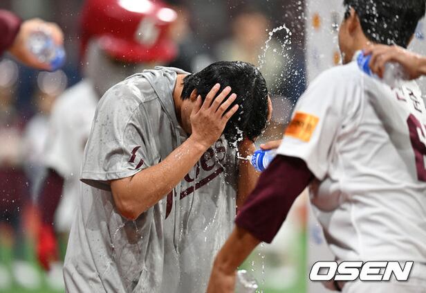 경기 종료 후 선발승을 거둔 키움 하영민이 동료들에게 축하 물세례를 받고 있다. 2024.03.30 /sunday@osen.co.kr