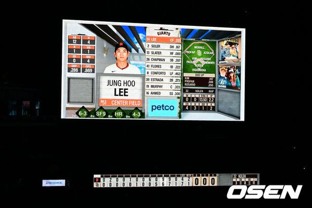 경기를 마치고 샌프란시스코 이정후의 기록과 스코어가 전광판에 보여지고 있다. 2024.03.31 /jpnews@osen.co.kr