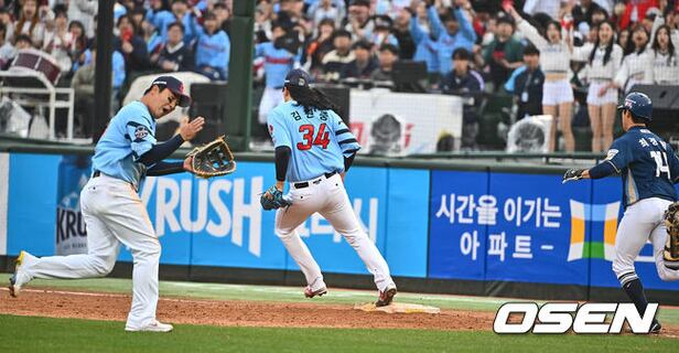 롯데 자이언츠 정훈이 9회초 2사 1, 3루 최정원을 1루 땅볼로 잡고 환호하고 있다. 2024.03.31 / foto0307@osen.co.kr