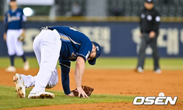 2회말 LG 선두타자 오지환의 내야땅볼을 데이비슨 1루수가 포구 실책하고 있다. 2024.04.03 / soul1014@osen.co.kr