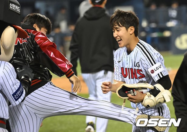 경기 종료 후 LG 구본혁, 문보경이 기쁨을 나누고 있다. 2024.04.06 / ksl0919@osen.co.kr