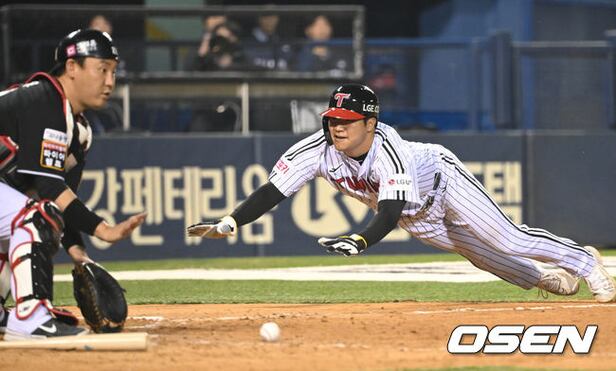 8회말 2사 1, 2루 LG 오지환의 내야안타 때 3루주자 문보경이 홈으로 슬라이딩해 득점을 올리고 있다. 2024.04.06 / ksl0919@osen.co.kr