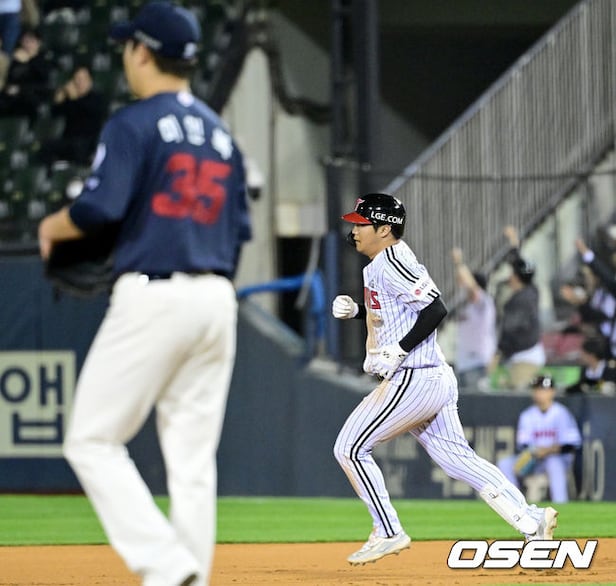 6회말 무사 1루 상황 LG 문보경이 다시 앞서가는 우월 투런포를 날리고 그라운드를 돌고 있다. 2024.04.17 / dreamer@osen.co.kr