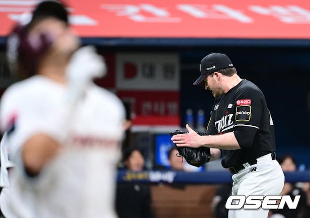 8회말 2사 1, 2루 상황 키움 이용규를 내야 땅볼로 이끌며 실점없이 이닝을 막아낸 KT 선발 벤자민이 기뻐하고 있다. 2024.04.18 / dreamer@osen.co.kr
