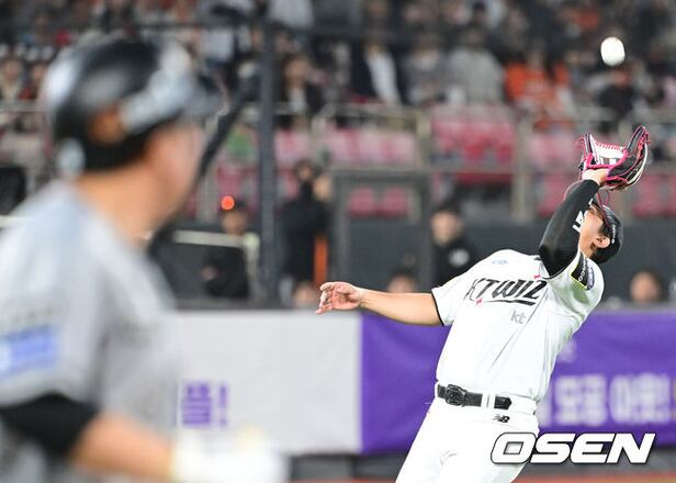 4회초 1사 2루 KT 3루수 황재균이 한화 안치홍의 뜬공을 잡아내고 있다. 2024.04.25 / ksl0919@osen.co.kr