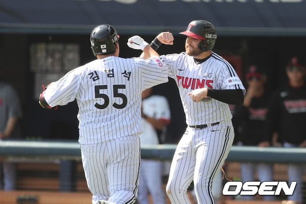 오스틴이 1회 선제 투런 홈런을 터뜨렸고, 김범석이 4회 역전 결승 투런 홈런을 쏘아올렸다. 톱타자 박해민이 3타수 2안타 1볼넷을 기록했다.