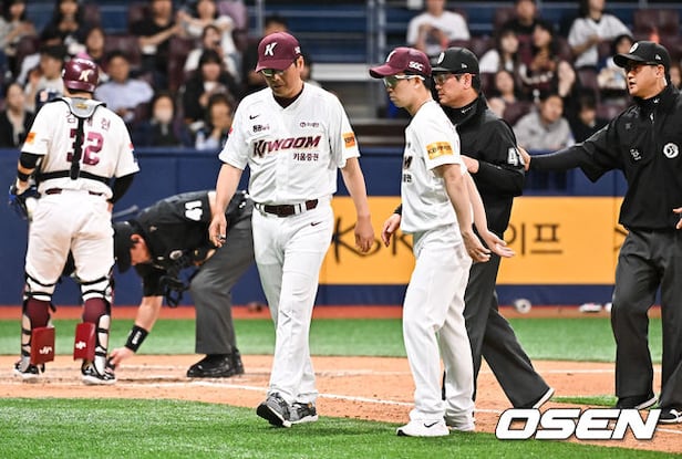 8회초 키움 홍원기 감독이 비디오판독 이후 두산 라모스의 3피트 라인 관해 어필한뒤 더그아웃으로 들어가고 있다. 2024.05.08 / soul1014@osen.co.kr