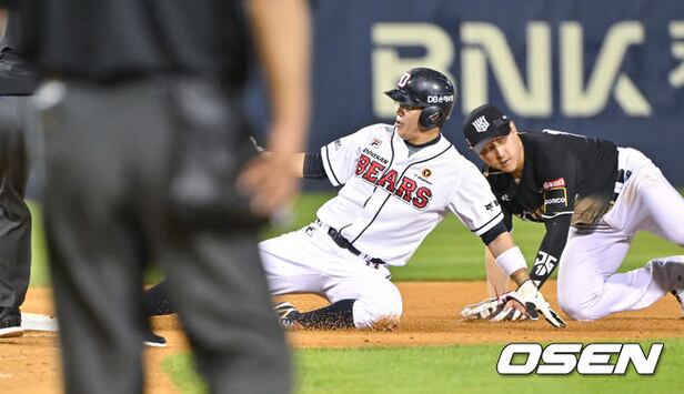 5회말 1사 1루 두산 강승호의 안타때 1루 주자 허경민이 3루에 슬라이딩을 하고 있다. 2024.05.10 / soul1014@osen.co.kr