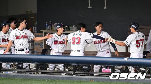 1회말 무사 2,3루에서 두산 김태근의 희생플라이 때 홈을 밟은 양찬열이 더그아웃에서 환호하고 있다. 2024.05.11 /sunday@osen.co.kr