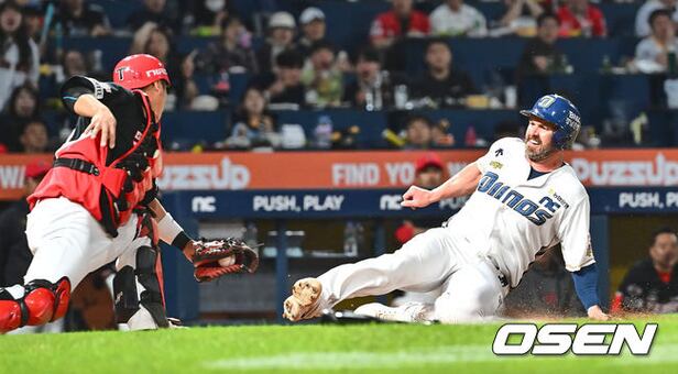 NC 다이노스 데이비슨이 3회말 1사 3루 김성욱의 우익수 플라이 아웃때 홈으로 쇄도했으나 아웃되고 있다. 2024.05.17 / foto0307@osen.co.kr