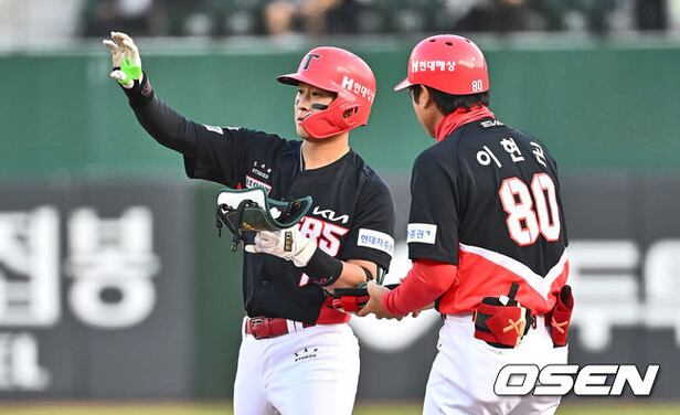 KIA 타이거즈 박찬호가 1회초 중견수 왼쪽 안타를 치고 세리머니를 하고 있다. 2024.05.21 / foto0307@osen.co.kr