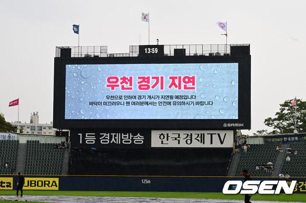 경기 개시 10여 분을 앞두고 비가 내리며 경기가 지연되고 있다. 2024.05.26 / jpnews@osen.co.kr