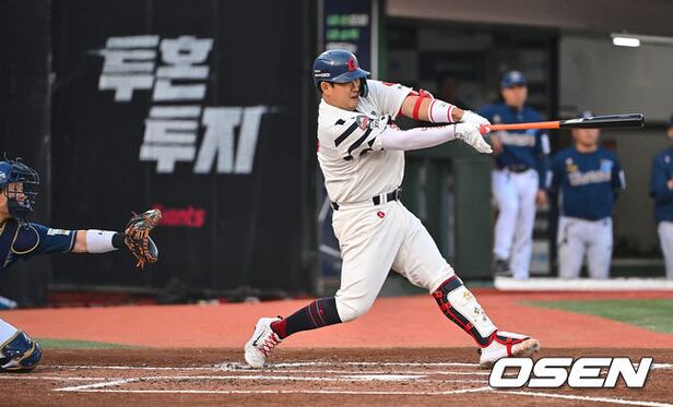 롯데 자이언츠 유강남이 1회말 무사 1,3루 좌익수 앞 1타점 안타를 치고 있다. 2024.05.31 / foto0307@osen.co.kr
