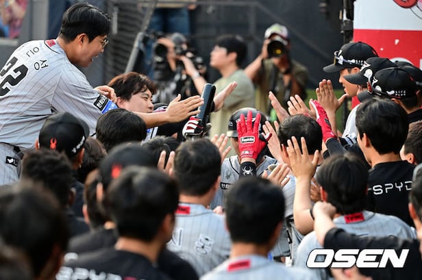 7회초 2사 2루에서 한화 이원석이 최인호의 선제 1타점 적시 2루타에 득점에 성공하며 동료선수들과 기뻐하고 있다.. 2024.06.06 / jpnews@osen.co.kr