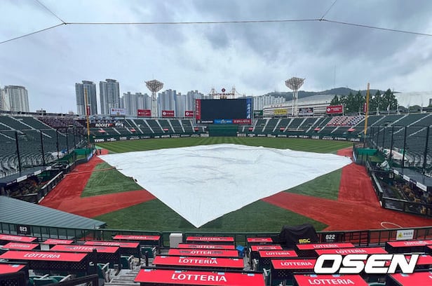 부산지역에는 이날 오전부터 내리는 굵은 빗줄기가 뿌렸다. 시간당 1~3mm의 강수량으로 그라운드를 적셨다. 경기 개시 시간인 오후 5시에 임박할수록 시간당 강수량은 8mm까지 더 늘어날 예정이었다. 결국 오후 2시45분 즈음, 우천 취소 결정이 일찌감치 내려졌다.