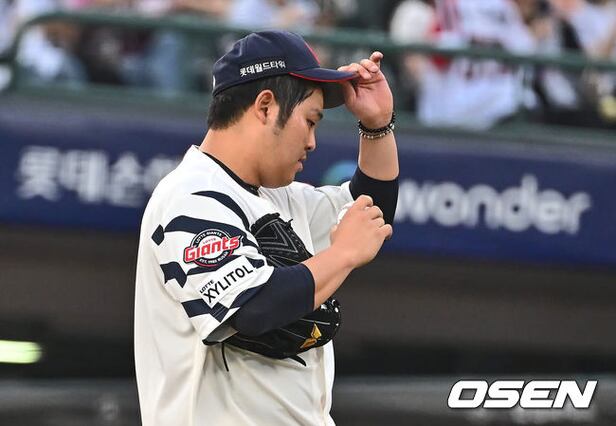롯데 자이언츠 한현희가 3회초 무사 1,2루 키움 히어로즈 김혜성에게 우익수 오른쪽 1타점 2루타를 맞고 아쉬워하고 있다. 2024.06.11 / foto0307@osen.co.kr