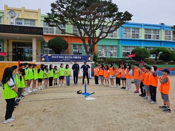 KBO는 17일 전라남도 여수시 율촌초등학교에서 '2024 KBO 찾아가는 티볼교실'을 개최했다. 율촌초는 교육부 지정 늘봄학교로 이날 티볼교실에는 6학년 1반과 2반 학생들과 함께했다.
