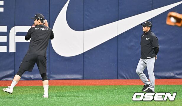 경기 앞두고 한화 양상문 투수 코치가 문동주의 투구를 지켜보고 있다. 2024.07.09 / soul1014@osen.co.kr