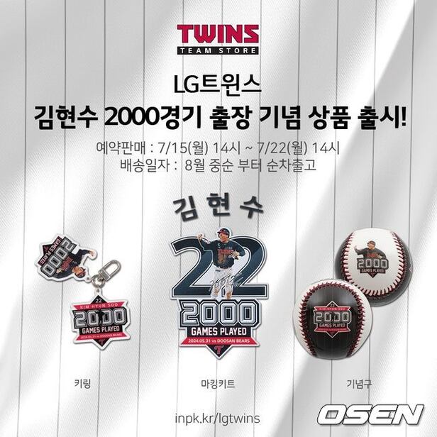 김현수 2000경기 출장 달성 기념 상품 출시에 대한 자세한 내용은 LG 트윈스 홈페이지 및 SNS를 통해 확인 할 수 있다.