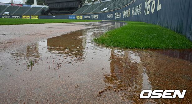 잠실구장 외야에 물이 고여있다. 2024.07.18 /cej@osen.co.kr