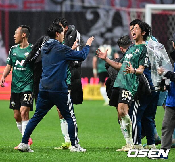 경기를 마치고 전북 최원재 감독대행이 구자룡과 승리를 기뻐하고 있다. 2024.04.20 /jpnews@osen.co.kr