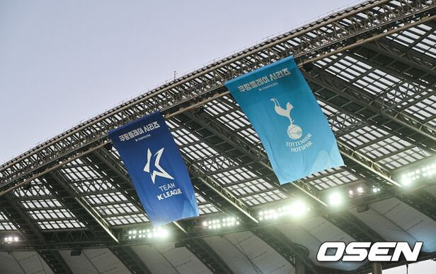 팀K리그와 토트넘의 대형 현수막이 경기장 위에서 휘날리고 있다. 2024.07.31 / soul1014@osen.co.kr