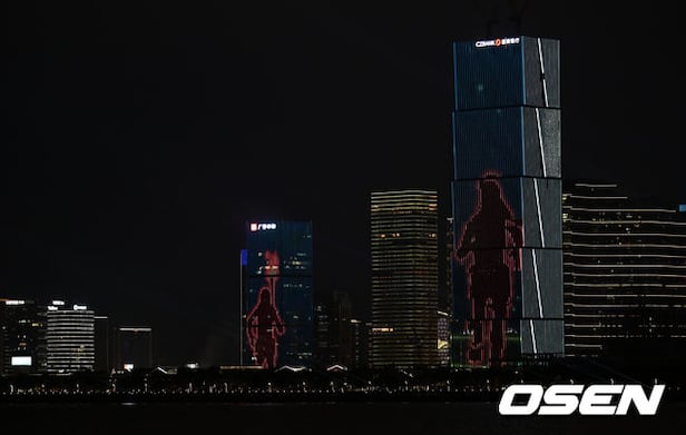 개막식을 알리는 화려한 라이트쇼가 펼처지고 있다. 2023.09.23 / ksl0919@osen.co.kr