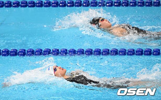 한국 대표팀 이은지가 힘차게 물살을 가르고 있다다. 한국 대표팀은 3분 46초78로 동메달을 목에 걸었다. 2023.09.26 / ksl0919@osen.co.kr