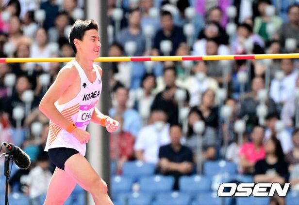 육상 높이뛰기 최진우가 결선 진출에 성공한 뒤 기뻐하고 있다. 2023.10.02 / dreamer@osen.co.kr