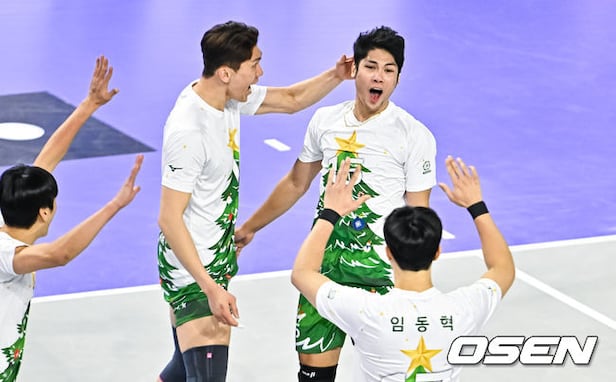 1세트 대한항공 에스페호가 세트포인트를 성공시킨뒤 기뻐하고 있다. 2023.12.25 / soul1014@osen.co.kr
