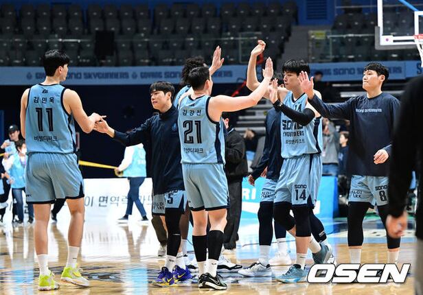 경기를 마치고 승리한 소노 선수들이 기뻐하고 있다. 2024.01.23 / dreamer@osen.co.kr