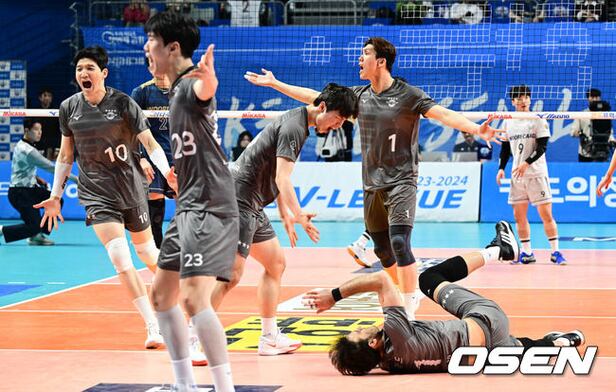 대한항공은 서울 장충체육관에서 열린 '도드람 2023-2024 V-리그' 5라운드 대한항공 점보스와의 경기에서 세트스코어 3-2(26-28, 23-25, 25-19, 25-17, 15-12) 승리를 따내고 5연승을 질주했다.