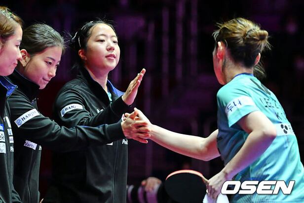 대한민국 신유빈이 푸에르토리코 MELANIE DIAZ를 잡은 이시온과 하이파이브를 하고 있다. 2024.02.18 / foto0307@osen.co.kr