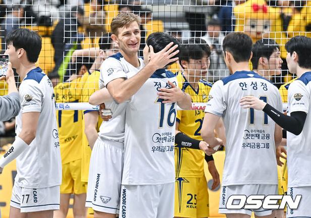 우리카드는 22일 경기도 의정부시 의정부체육관에서 열린 '도드람 2023~2024 V리그' 남자부 KB손해보험과의 경기에서 3-0(25-14 25-18 25-20)으로 완승을 거뒀다.