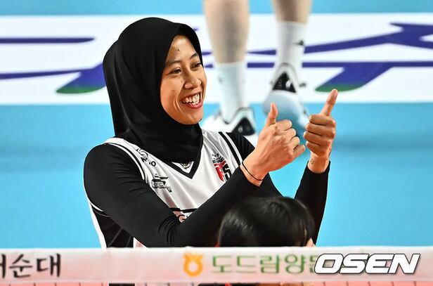 정관장 메가가 득점을 올린 지아를 보며 엄지척을 하고 있다. 2024.02.27 / foto0307@osen.co.kr