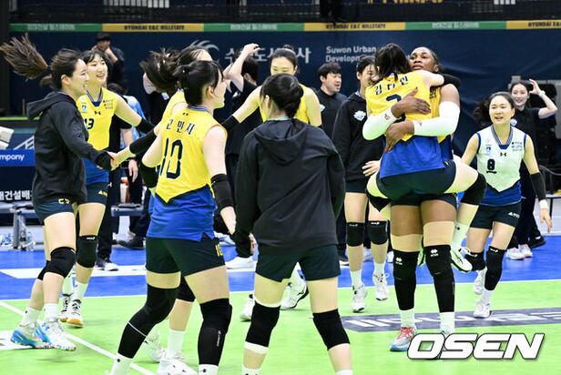 현대건설 선수단이 승리를 기뻐하고 있다. 2024.03.30/ cej@osen.co.kr