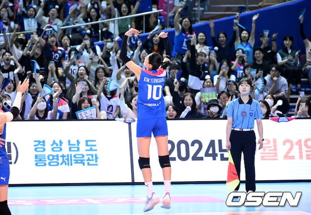 2세트 서브 에이스를 성공시킨 김연경이 환호하고 있다. 2024.06.08 /sunday@osen.co.kr