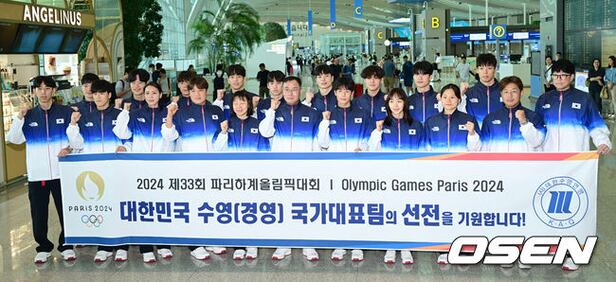 2024 파리올림픽'에 출전하는 수영 대표팀이 16일 오전 인천국제공항을 통해 프랑스 파리로 출국했다.