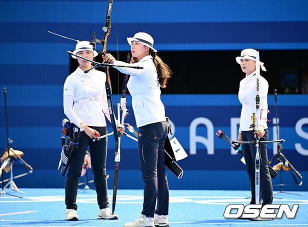 28일 (한국시간) 프랑스 파리 앵발리드에서 '2024 파리올림픽' 양궁 여자 리커브 단체 한국과 대만의 경기가 열렸다.