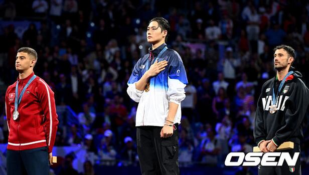 오상욱은 28일(한국시간) 프랑스 그랑팔레에 위치한 펜싱장에서 열린 '2024 파리 올림픽' 펜싱 남자 사브르 개인전 결승서 튀니지의파레스 페르자니(세계 랭킹 13위) 상대로 15-11로 승리를거두면서 값진 금메달을 목에 걸었다. 이번 대회 한국의 첫 금메달이자 개인 커리어 통산 그랜드 슬램을 달성하는 값진 금빛 찌르기였다.