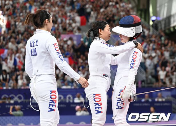 30일(한국시각) 프랑스 파리 그랑팔레에서 '2024 파리올림픽' 펜싱 여자 에페 단체전 한국(송세라 강영미 이혜인 최인정)과 프랑스의 8강전 경기가 열렸다.