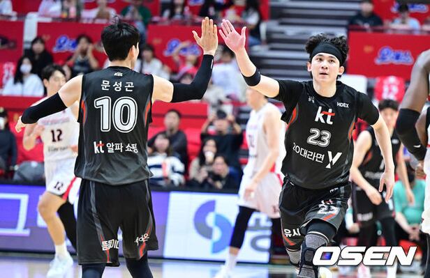 3쿼터, KT 박지훈과 문성곤이 득점에 기뻐하고 있다. 2024.11.11 / dreamer@osen.co.kr