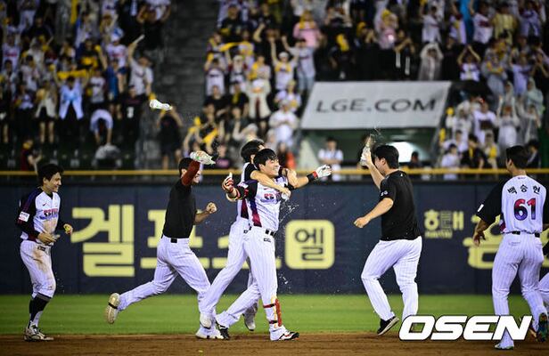 프로야구 LG 트윈스가 한화 이글스 상대로짜릿한 끝내기 승리로 1위 자리를 지켰다.LG는 8일 서울 잠실구장에서 열린 2025 KBO리그 한화와경기에 2-1로 승리했다. 연장 10회말 끝내기 승리. 이로써 1위 LG는 2위 한화를 2경기 차이로 따돌렸다.