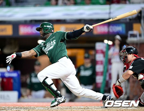 6회말 2사 1루 상황 SSG 에레디아가 안타를 날리고 있다. 2025.08.16