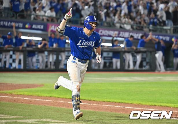 삼성 라이온즈 김영웅이 8회초 1사 만루 동점 우월 만루 홈런을 치고 세리머니를 하고 있다. 2025.08.17
