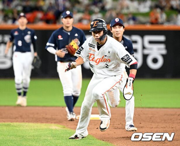 4회말 무사 1사에서 한화 손아섭의 땅볼 때 런다운에 걸린 1루주자 심우준이 태그를 피하고 있다. 2025.08.19