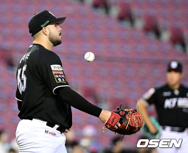 2회말 2사 만루 상황 두산 케이브의 싹쓸이 3타점 2루타 때 KT 중견수 스티븐슨이 타구를 놓쳤다. 아쉬워하는 KT 선발 헤이수스. 2025.08.22