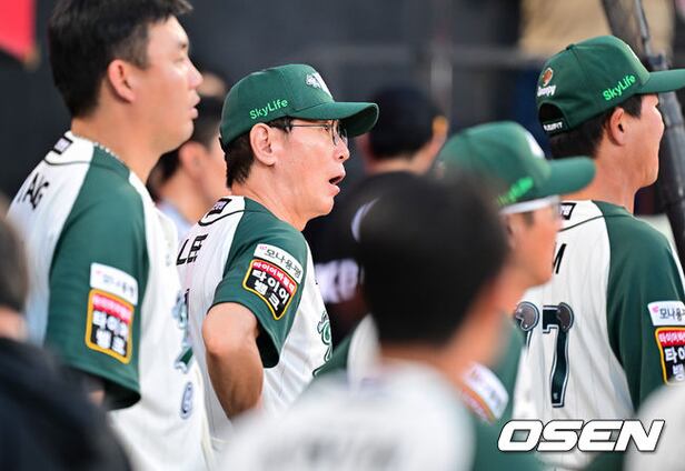 2회말 3루 주자 유준규가 이중도루 시도해 홈에서 태그아웃됐다 . 이강철 감독이 비디오판독 결과에 항의하고 있다. 2025.08.30