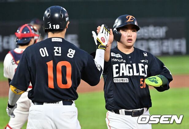 한화 이글스 문현빈이 1회초 2사 2루 채은성의 중견수 앞 안타때 득점을 올리고 있다. 2025.09.10