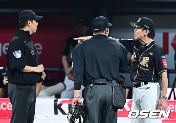 8회초 1사 주자없는 상황 LG 구본혁이 내야 안타를 치고 1루에서 세이프 됐다. 구본혁의 주루 플레이를 두고 심판진과 대화를 나누는 KT 이강철 감독. 2025.09.16